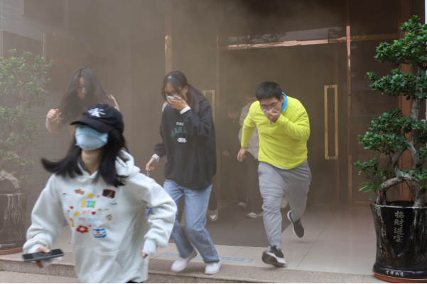 活动聚焦实验室安全核心风险,精心设置火灾疏散演习与灭火演习两大核心环节,全程模拟真实实验场景突发火情的应急处置流程。在火灾疏散演习环节,随着模拟火情信号发出,化学实验楼内 “火情” 骤起,参演师生迅速响应,在现场工作人员的引导下,用湿毛巾捂住口鼻,弯腰低姿,按照预定疏散路线快速、有序地撤离至安全集合点。整个疏散过程中,师生们听从指挥、动作规范,严格遵守 “不拥挤、不慌乱、不踩踏” 的原则,完整呈现了从突发火情识别、应急处置启动、人员紧急撤离到分级上报的全流程,充分展现了良好的安全素养。
